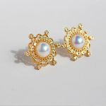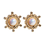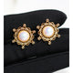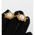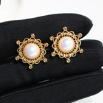 1 Pair Elegant Retro Geometric Inlay Brass Pearl Zircon 24K Gold Plated Ear Studs