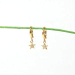 Pattern: Star Inlay Material: Zircon Design: Inlay Quantity: 1 Pair Color: Gold Occasion: Casual,Holiday Material: Brass Classification: Drop Earrings Style: Simple Style Ear Needle Material: Brass Gender: Women's Weight: 4g
