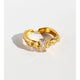 Brass 24K Gold Plated Pleated Inlay Geometric Zircon Open Rings