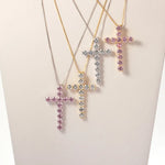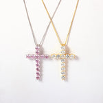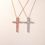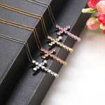 Bright Zircon Cross Necklace Plated 18K Gold Pendant Women's Fashion Necklace Popular Ornament Party Wear