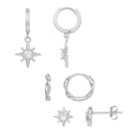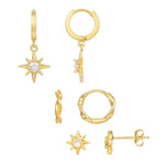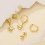 Elegant Sun Moon Star Shape Hoop Earrings Set For Women With Embedded Zirconia Studs Gold And Silver Color 18K Gold Plated