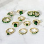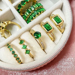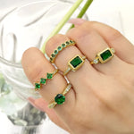 Jewelry Copper Plating 18K Gold Emerald Geometric Ring Fashion High-Grade Hip Hop Green Zirconium Series