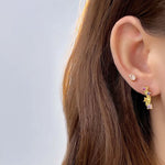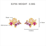 Thailand Copper Plating 18K Gold Color Zircon Stud Earrings Korean Style Geometric Five-Pointed Star Jewelry Female Earrings Ear Bone Stud Wholesale
