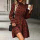 Autumn Winter Women's French Floral Print Slim Fit Long Sleeve Midi Dress Stand Collar Bell Sleeve A-Line Dress Commute Style