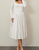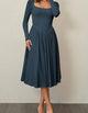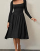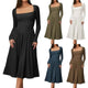 Autumn Women's Long Sleeve Base Dress Pure Color Tight Square Collar Pleated Outerwear Female Clothing A-Line Skirt