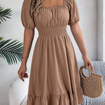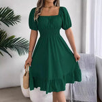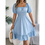 Casual A-Line Skirt Dress With Ruffle Hem Short Sleeve Square Collar Waist Cinching Spring Summer Women's Fashion Elegant Commute
