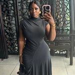 Casual Round Neck Sleeveless Pure Color Dress European Style Irregular Skirt Dress Easy To Wear Comfortable Breathable Fabric