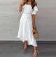 Casual Three-Piece Set Pure White Lace Hem Irregular Skirt Fashionable European Women's Dress Urban Style Short Sleeve One-Shoulder