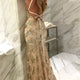 Elegant European Style Sequin Backless Strap V-Neck Dress Long Ankle Length Princess Skirt Design No Sleeve Mid Waist Dress