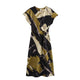 Elegant Floral Print Silk Satin Midi Dress Women's Spring New Style Fashionable Gathered Waist European Style Dress