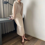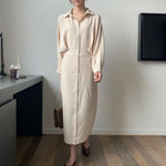 Elegant French Waist Cinching Slimming Fairy Tale Style Long Dress Goddess Look Loose Fit One Piece Pure Color Polyester Dress