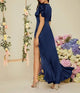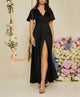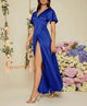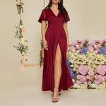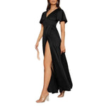 Elegant High Waist Short Sleeve Solid Color Women's Dress Fashionable Style V-Neckline Casual Commute