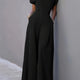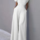 Elegant High Waist Wide Leg One Piece Suit European Style Fashionable Solid Color Semi Open Collar Sleeveless Polyester Fabric