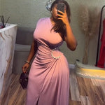 Elegant Long Asymmetrical Diamond Embellished Pleated Summer Dress European Women's Fashion Fresh Sweet Style Polyester Fabric