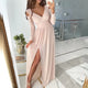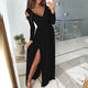 Elegant Long Sleeve V-Neck Pure Color Asymmetrical Dress Women's Autumn Winter Fashion Split Dress Cotton Polyester Blend