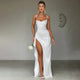 Elegant Pure Color Summer New Sexy Back Strap Split Evening Gown Style One Shoulder Sleeveless Dress