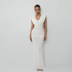 Elegant Pure Color Women's Dress Slim Fit Wrap Waist Pleated Autumn New Style Style Street High Street