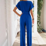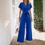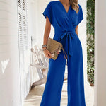 Elegant V-neck One-piece Women's Suit Style Pure Color Sleeveless With Belt Long Pants Commute Quality