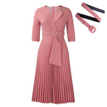 Fashionable African Waist-Cinching Dress Q108 Women's New Style OL Suit Collar Fashionable Belted Pleated Skirt Dress