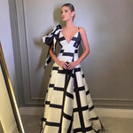 Fashionable Black White Strapless Evening Dress Style Print Backless Street Style Princess Skirt Dress
