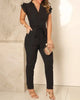Fashionable One-Piece Suit European Women's Clothing Sleeveless V-Neck Waist Belt Pure Color Polyester Fabric Patchwork