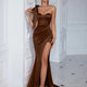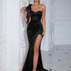 Fashionable Shoulder Bared Split Long Dress Sexy Evening Gown Solid Color Dress Elegantly Commuting Zipper Bodycon Dress