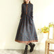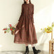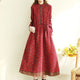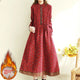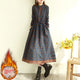 Floral Print Fleece Lined Long Thickened Winter Dress With Lace Trim A Line Skirt Style Polyester Fabric Button Detailing