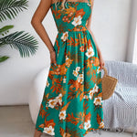 Floral Tie Waist Strap Dress Summer Spring Beach Holiday Long Skirt Women's Clothing European Style High Street Fashion