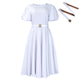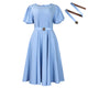 High Waist African Print Midi Dress Short Sleeve Round Neck Large Skirt Commute Style Comfortable Polyester Lycra Fabric
