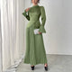 Independent Station Foreign Trade Palace Style High Neck Waist Pleated Long Sleeve Elegant Evening Party Dress