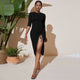 Irregular Drawstring Asymmetrical Knitted Mini Dress Five-Quarter Sleeve Bodycon Dress Elegant Style Universal Season Cotton Polyester