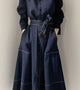 New Chic Minimalist Elegant Stand Collar Stitched Single Button Loose Belted Coat Style Long Dress A-Line Skirt
