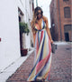 Rainbow Gradient Color Shiny Chiffon Digital Print Dress With High Waist And Large Skirt Summer Elegant Style Sleeveless Gown