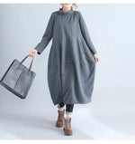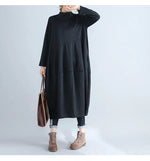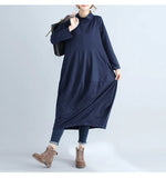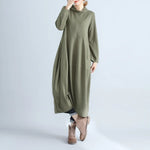 Retro Solid Color Lantern Sleeve Dress High Collar Cotton Linen Splicing Long Sleeve Women's Dress Autumn Winter Fashionable