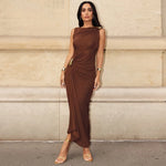 Sexy Slim Fit Metal Decoration Bodycon Sleeveless Dress Women's Fashion European Style Streetwear Gathered Skirt Uneven Hem