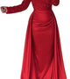 Shiny Sequin Evening Dress Long Sleeve Women's Style Queen Atmosphere Ball Hostess Spring Autumn Pure Color Commute Princess Skirt