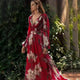 Winter New Style Women's Dress V-neck Long Sleeve Four-way Elastic Print Full Skirt Elegant Ankle-length Commute Dress