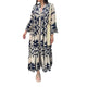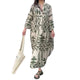 women's a-line skirt bohemian standing collar printing pleated long sleeve geometric maxi long dress holiday