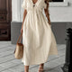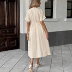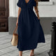 Women's Bohemian Style Deep V Neck Dress With Belt Casual New Fashion Pure Color Polyester Knitted Fabric Flared Sleeve