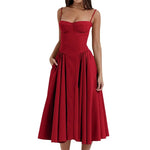 Pattern: Solid Color Design: Pleated,Diamond Occasion: Holiday,Daily Fabric Type: Polyester Neckline: Strap Sleeve Length: Sleeveless Dress Length Type: Maxi Long Dress Style: Sexy Season: Summer Fit Type: Regular Fit Dresses Type: Strap Dress Waist Line:...