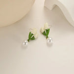 925 Silver Needle Pearl Earrings With Butterfly Knot Flower Tulip Cat's Eye Stone Leaf Design Bohemian Style Heart Shape Jewelry