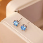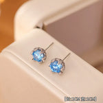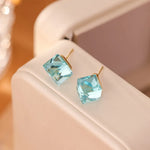 925 Sterling Silver Blue Crystal Cube Stud Earrings Exquisite Jewelry New Style Luxury Versatile Zircon Earrings For Women