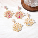Creative Design Alloy Crown Drop Earrings With Zircon Beads Personality Fashion Versatile Women's Holiday Style Jewelry