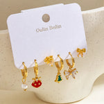 Elegant Christmas Tree Pendant Earrings With Embedded Zirconia Butterfly Knot Copper Plated 14K Gold Dipped Jewelry Set For Women