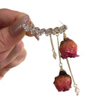 Elegant French Rose Tassel Earrings Bohemian Style Mixed Material One-Piece Ear Jewelry Unique Design Dainty Earring For Women