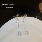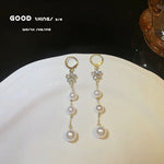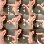 Elegant Long Tassel Pearl Earrings Women's Luxury Fashion Trend Geometric Pattern 925 Silver Earring Post Dangle Studs