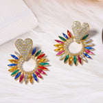 Elegant Round Geometric Diamond Embedded Earrings For Women Fashionable Versatile Minimalist Style Jewelry