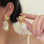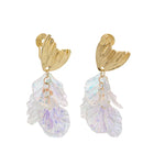 Elegant Shell Petal Ear Studs with Pendant Fish Tail Incense Plate No Piercing Required Luxury Bohemian Style Zinc Alloy Women's Jewelry