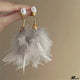 Elegant Vintage French Grey Feathers Pearl Tassel Earrings Versatile High-End Feeling Super Fairy Tale Style Women's Jewelry