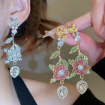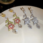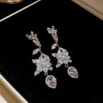 Pattern: Flower Plating Material: Platinum Plated Inlay Material: Zircon Quantity: 1 Pair Occasion: Weekend,Lawn Material: Alloy Classification: Drop Earrings Style: Simple Style,Classic Style Gender: Women's Weight: 21g